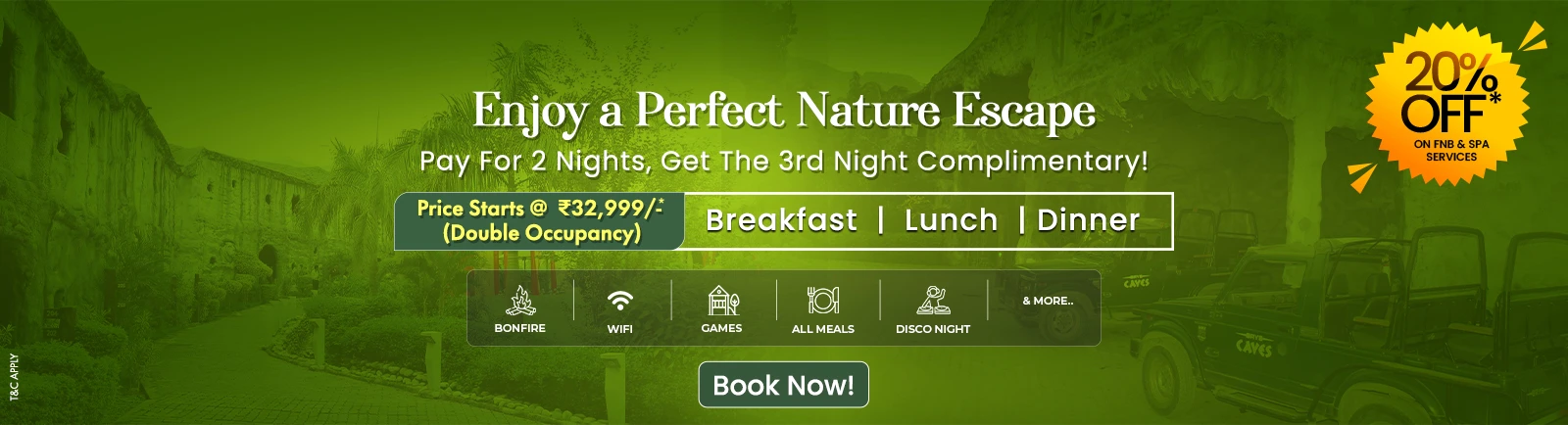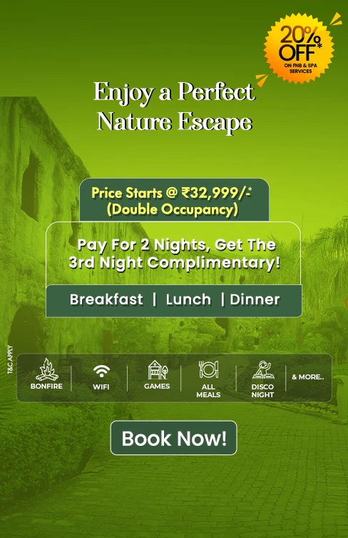 This cave theme luxury 5-star resort in jim corbett goes above and beyond, offering exclusive amenities like a premium spa to rejuvenate the mind and body, and a soundproof disc where guests can enjoy music and celebration without disturbance at their intimate as well as hyped moment of their life with the ethereal, serene and magical location in the heart of forest—an experience to be remembered!